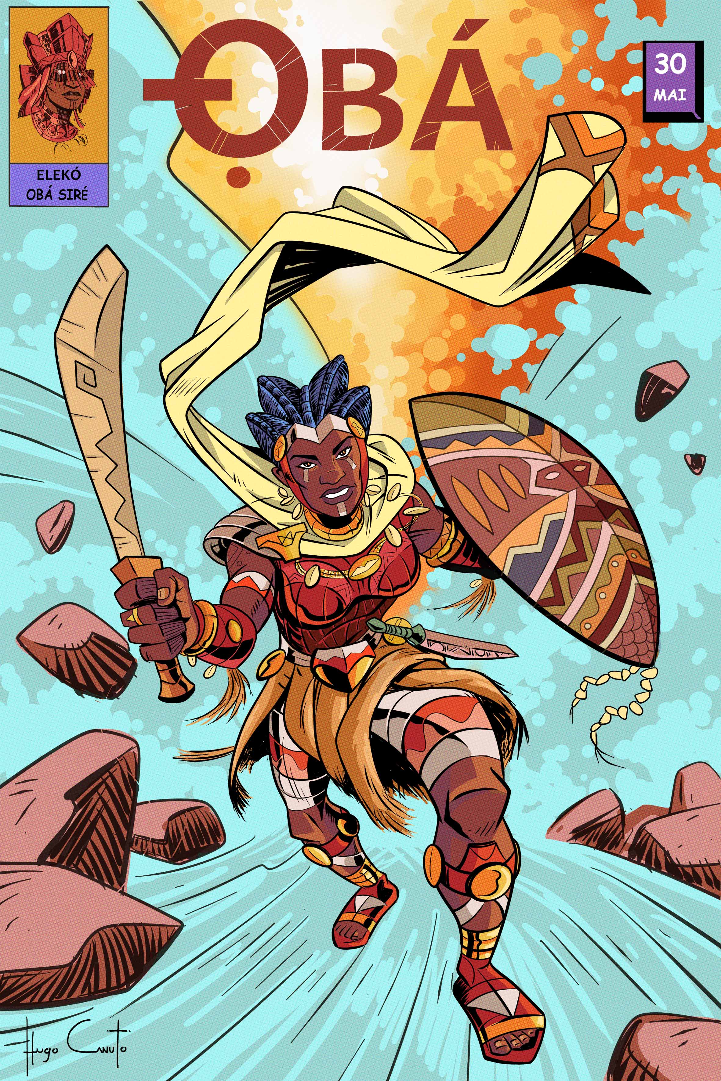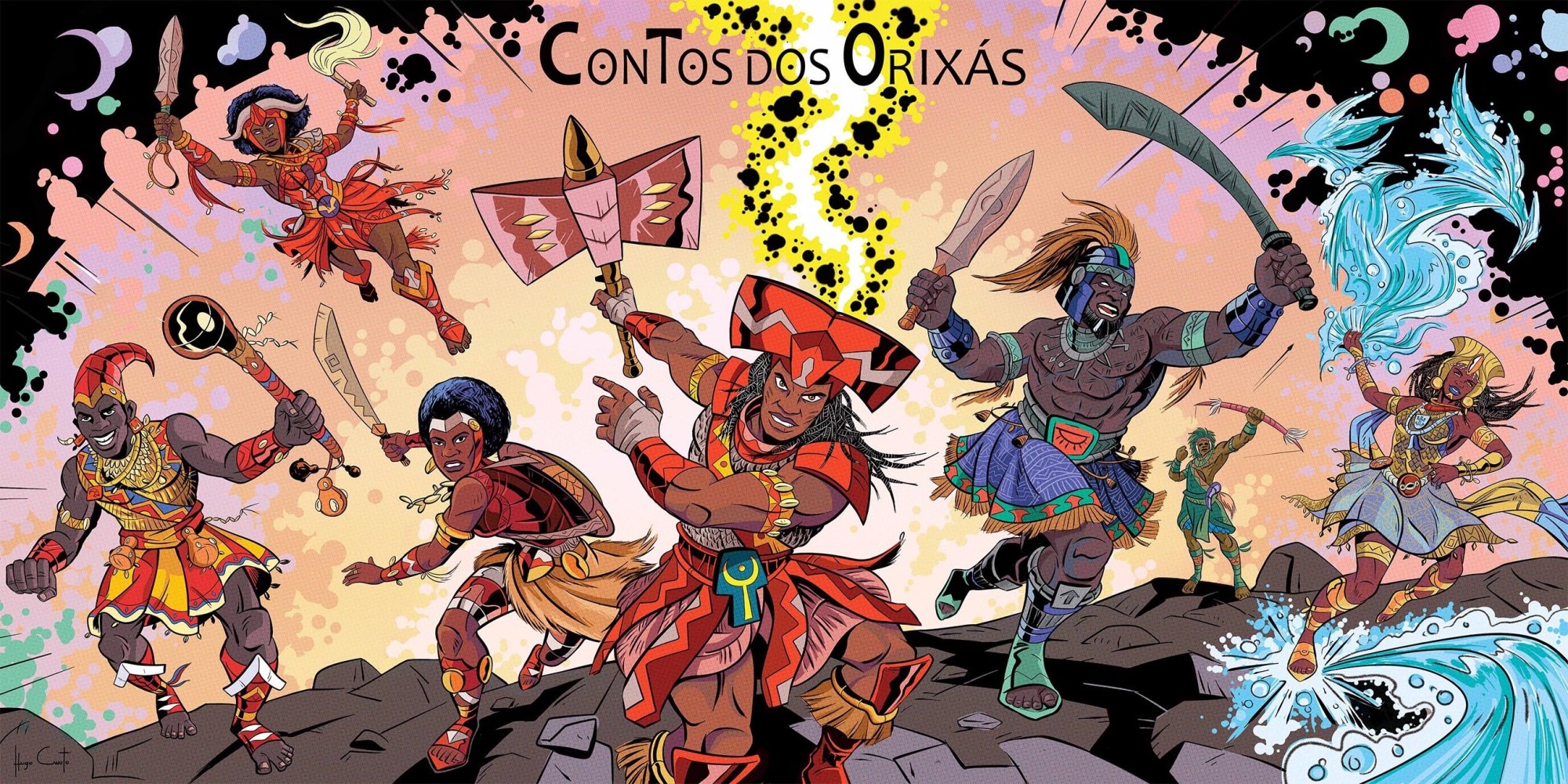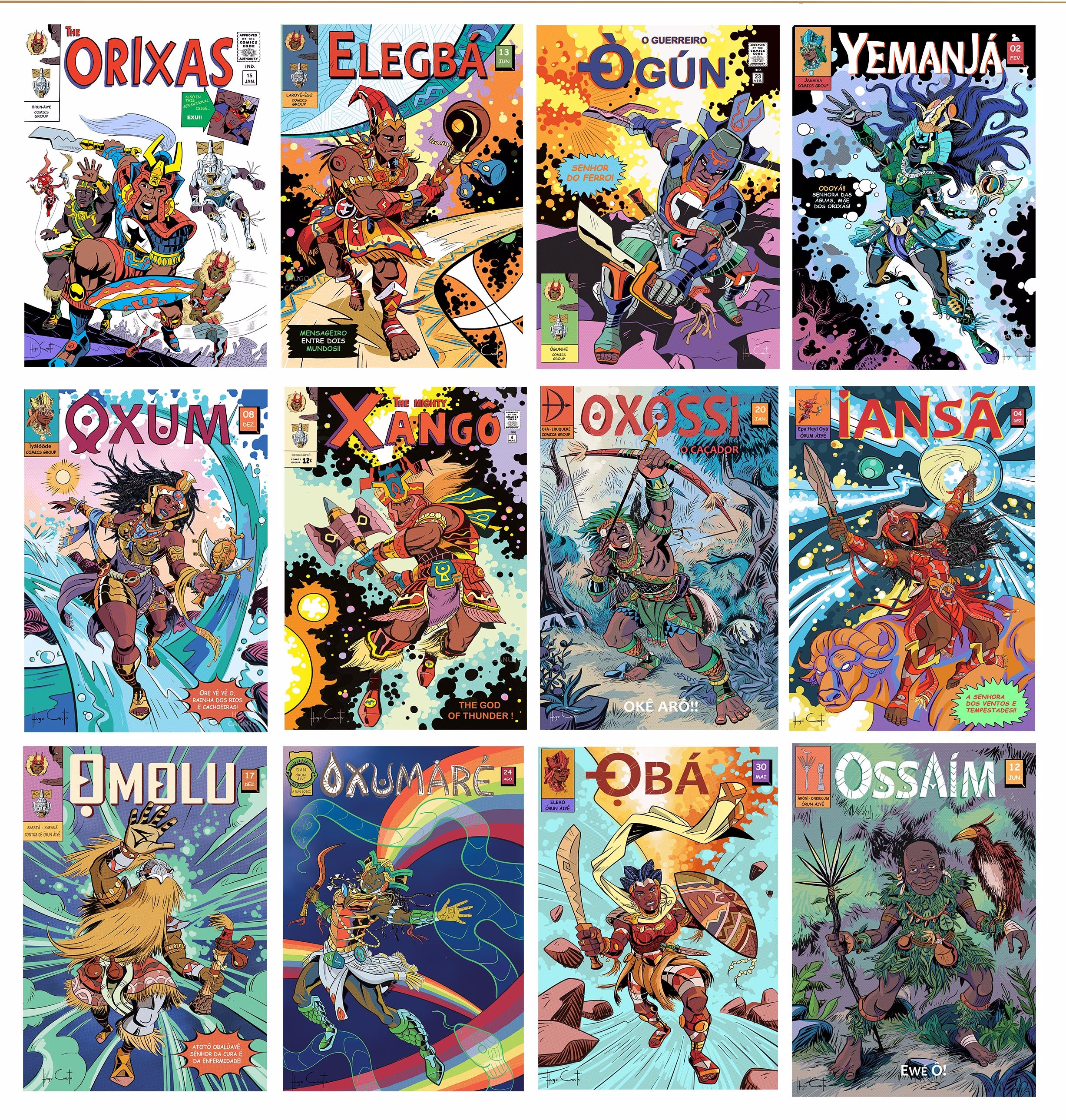 Composta por 16 + 1 ilustrações, é parte do projeto Contos dos Orixás, iniciada a partir da arte “The Orixas”, uma homenagem ao autor e criador Jack Kirby, inspirada na capa da Hq The Avengers #4, de 1966. Além dela, há mais outras duas no mesmo estilo, representando Xangô e Ogum, ou o que seriam heróis cujos poderes vieram dessas divindades, Porém, a partir da arte Elegbá/ Exú, as imagens se aprofundam no universo tradicional oral da cultura Yorubá e sua descendência no Brasil e Bahia, ao mesmo tempo em que o projeto de adaptação dos ÌTÁN, conjunto de narrativas relacionadas as divindades e heróis, tomava os contornos atuais.