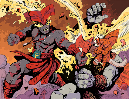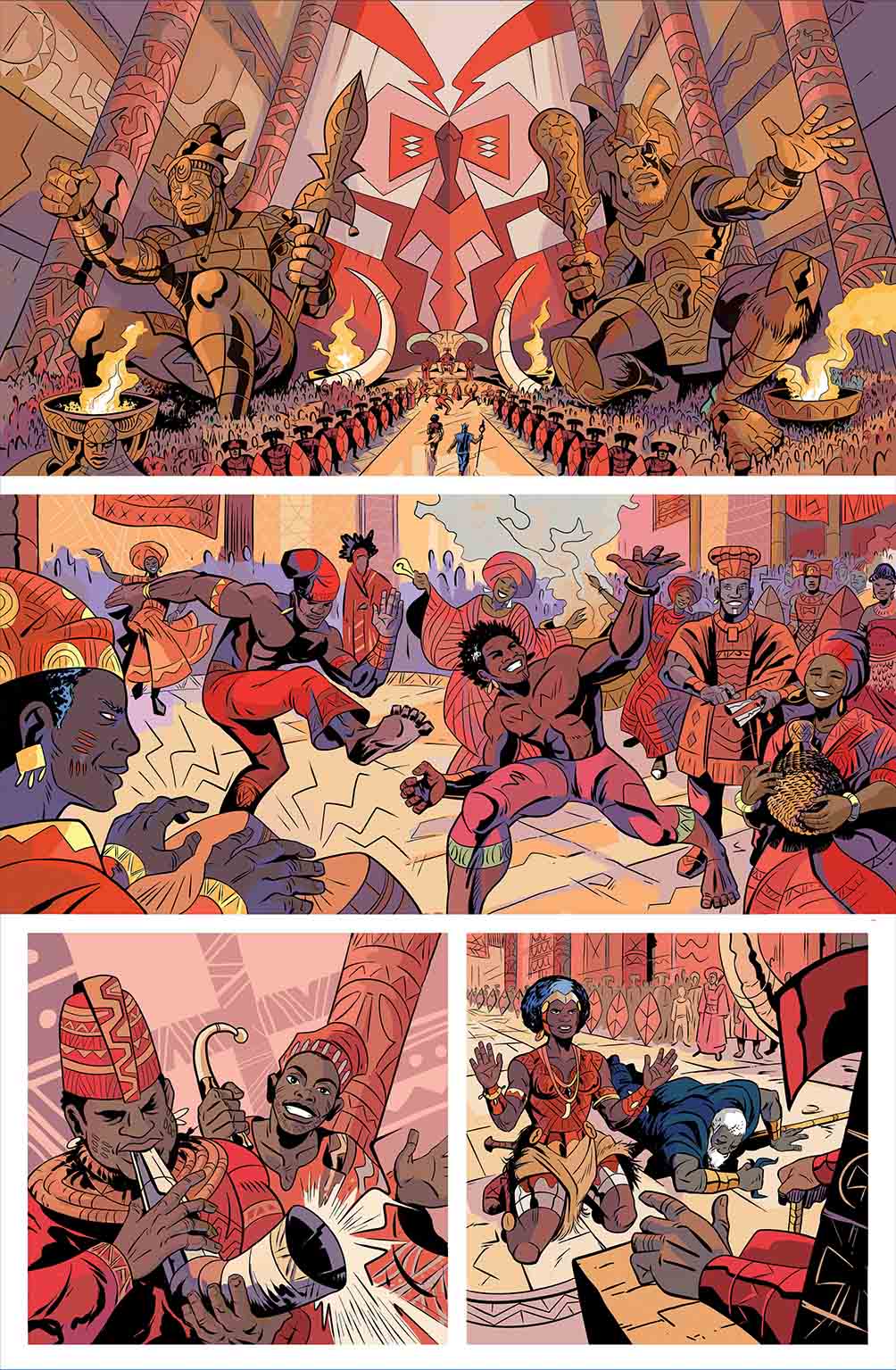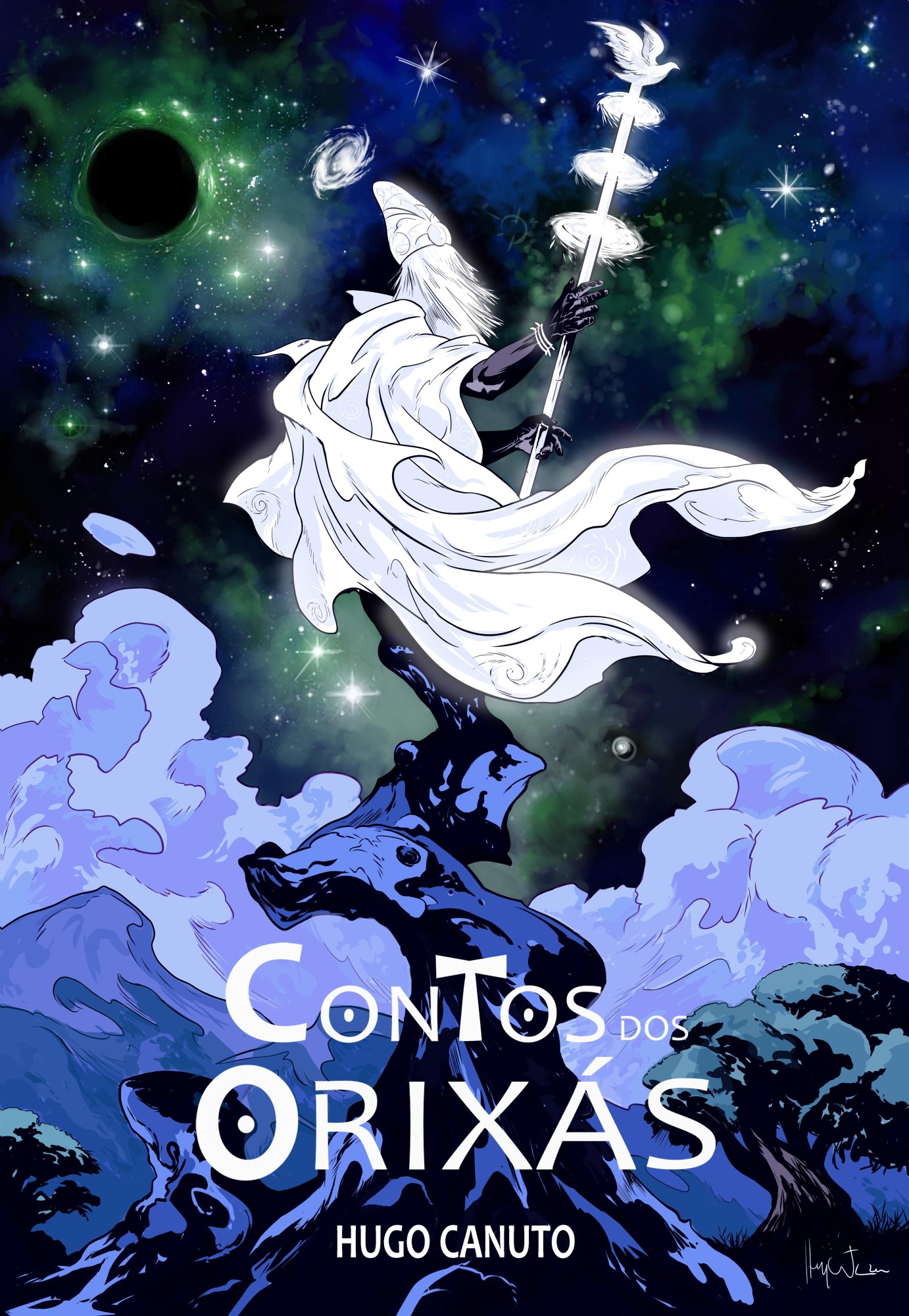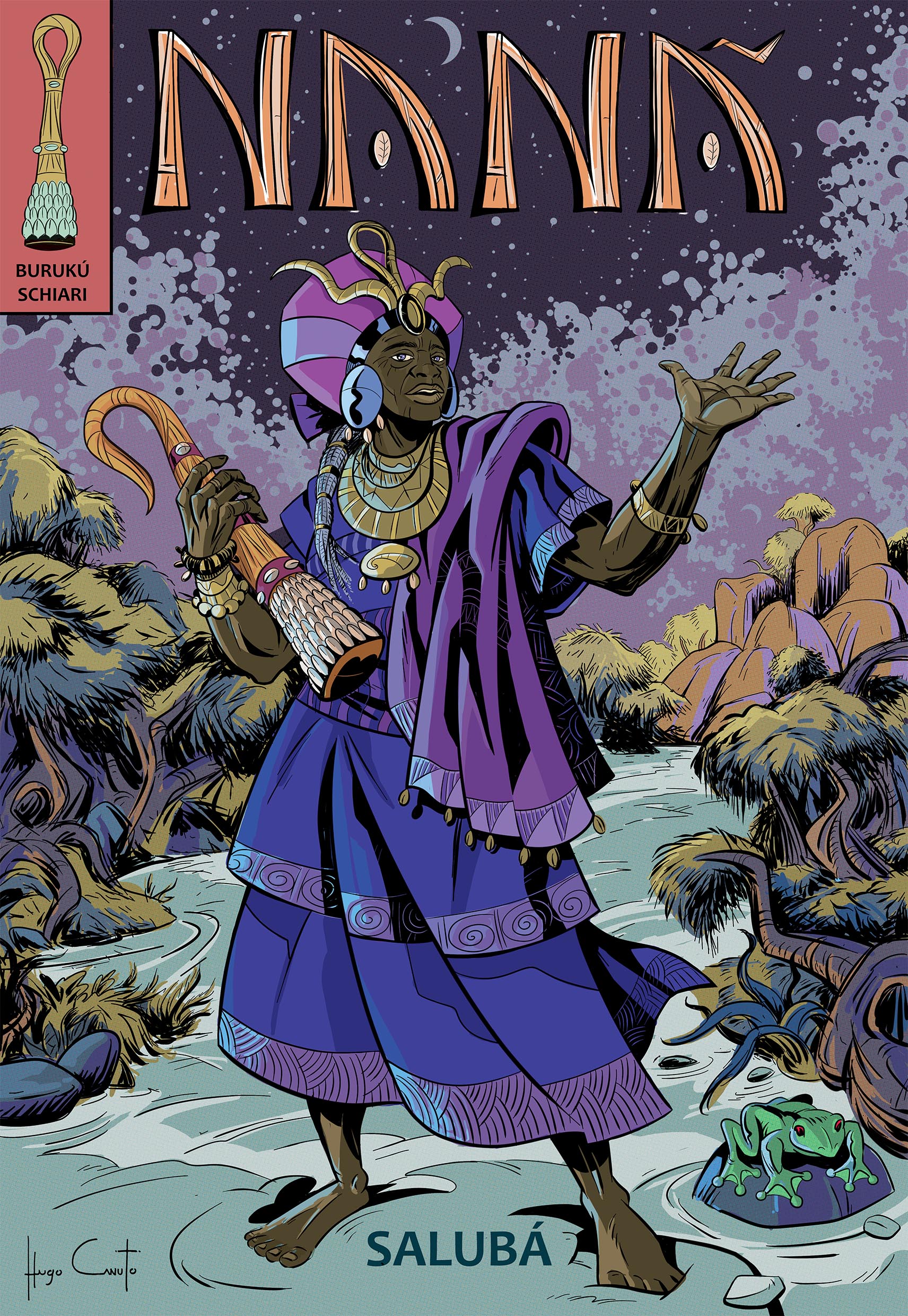 Composta por 16 + 1 ilustrações, é parte do projeto Contos dos Orixás, iniciada a partir da arte “The Orixas”, uma homenagem ao autor e criador Jack Kirby, inspirada na capa da Hq The Avengers #4, de 1966. Além dela, há mais outras duas no mesmo estilo, representando Xangô e Ogum, ou o que seriam heróis cujos poderes vieram dessas divindades, Porém, a partir da arte Elegbá/ Exú, as imagens se aprofundam no universo tradicional oral da cultura Yorubá e sua descendência no Brasil e Bahia, ao mesmo tempo em que o projeto de adaptação dos ÌTÁN, conjunto de narrativas relacionadas as divindades e heróis, tomava os contornos atuais.